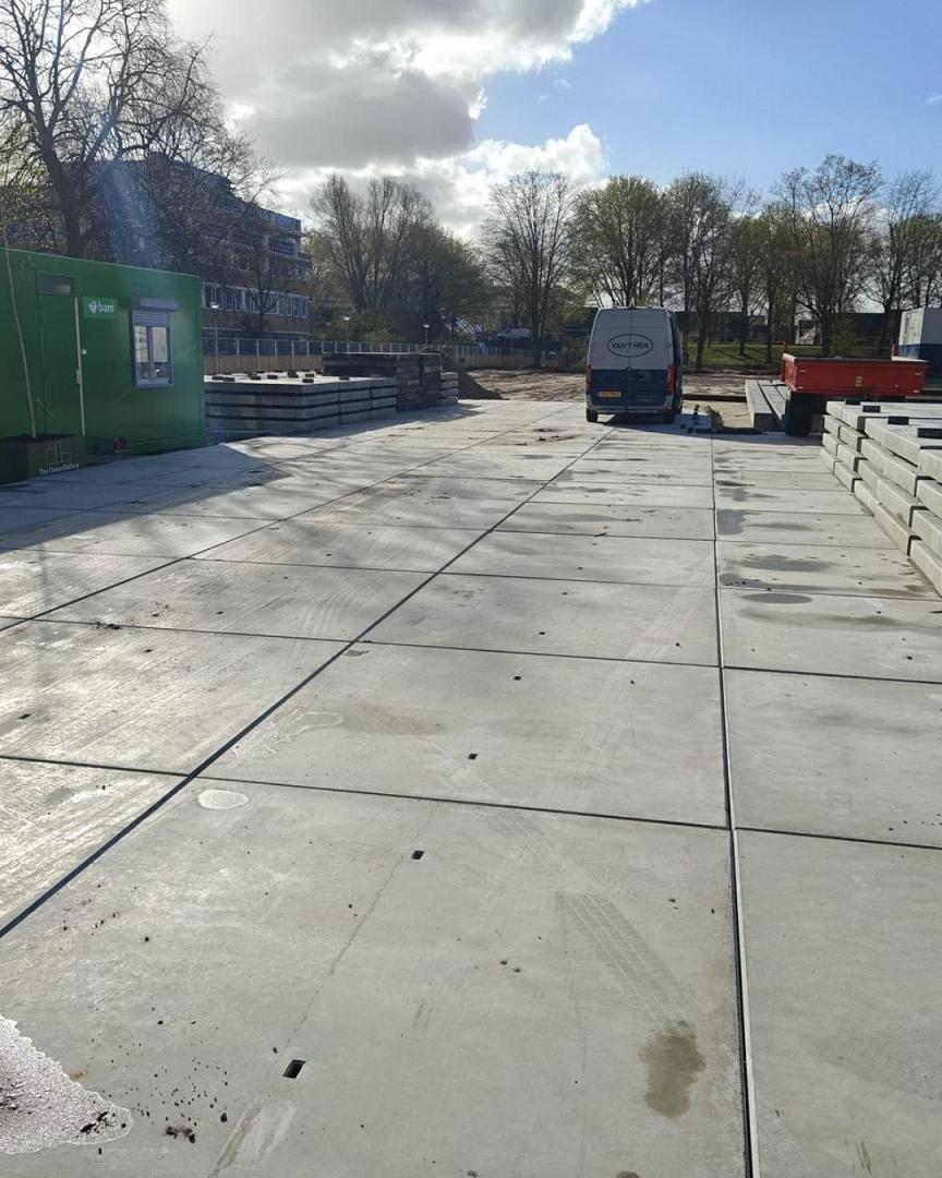 In Diemen hebben wij in opdracht van Elting Infra BV betonplaten geleverd voor een grootschalig bouwproject van de JdB groep, met als eindklant BAM. Voor dit project leverden wij in totaal 1600 betonplaten van 2 x 2 meter met enkele wapening en een gladde afwerking. De platen worden ingezet als tijdelijke verharding voor zwaar bouwverkeer, waarbij betrouwbaarheid en draagkracht essentieel zijn.